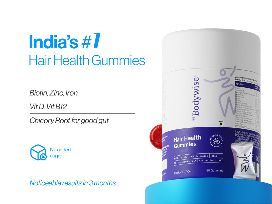 Can't thank Bodywise enough. Started these gummies 3.5 months back. I used the bodywise app to get daily reminders & it really helped me not to forget to take gummy. After 3 months, my hair fall has completely reduced!